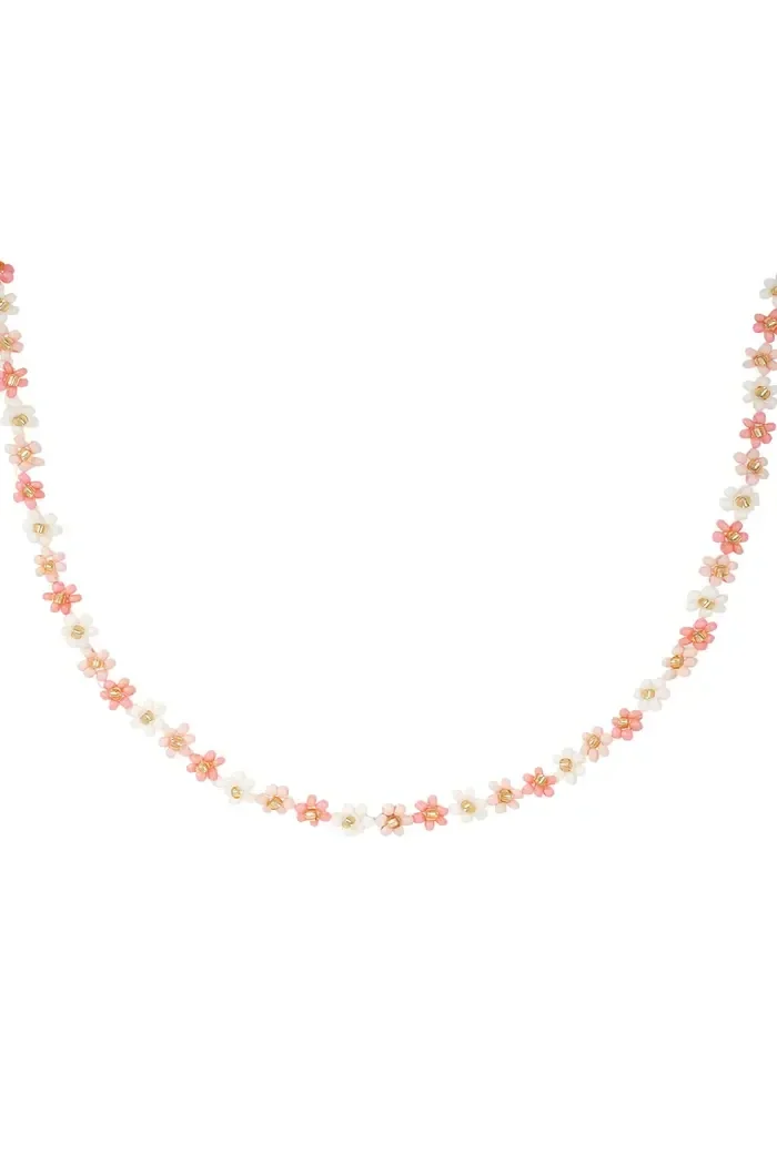 De ketting is gemaakt van glaskralen en stainless steel.